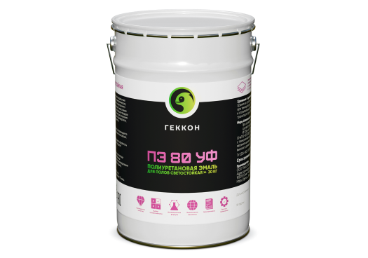 Геккон ПЭ 80 УФ - Наполненное полиуретановое однокомпонентное покрытие, которое наносится на основание несколькими слоями, благодаря чему обеспечивается бесшовное высокопрочное износостойкое и водонепроницаемое покрытие. Представляет собой готовый к применению состав, отверждаемый влагой воздуха. После полной полимеризации покрытие приобретает высокие защитные и физико-механические характеристики: высокую химическую стойкость, ударопрочность и стабильность свойств. По сравнению с окрасочным полиуретановым покрытием полиуретановая эмаль выдерживает более интенсивные абразивные нагрузки. Колеруется непосредственно во время производственного процесса.